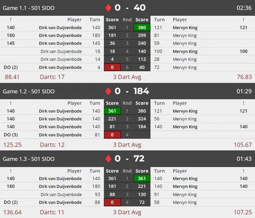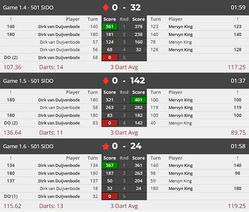 After the match against King, Van Duijvenbode also won convincingly over Graham Usher (6-2) and Graham Hall (6-3) to qualify for the Euro Tour tournament in Budapest. In the qualifier for the Swiss Darts Open, Van Duijvenbode dealt with Leighton Bennett (6-4), Jitse van der Wal (6-3) and Jim Williams (6-3).