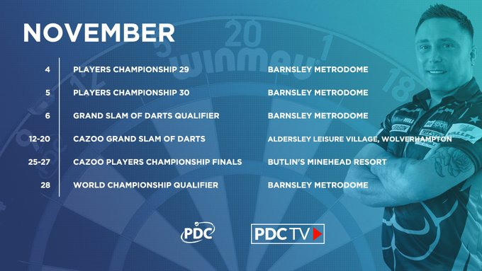 The PDC have confirmed the schedule for November as the end of 2022 begins to take shape including the