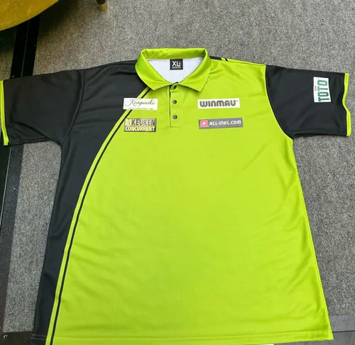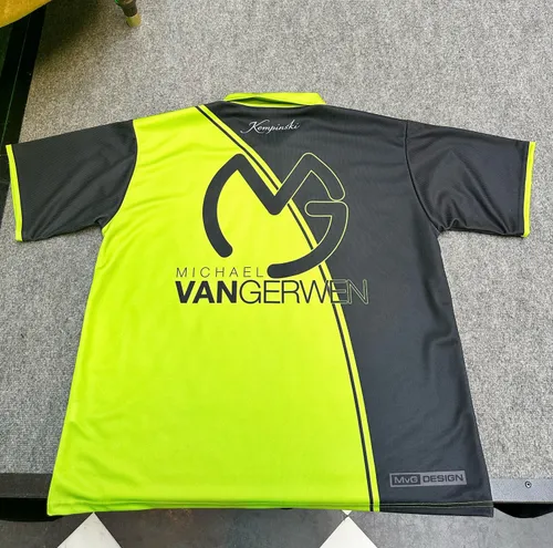 With his previous match shirt, the sleeves and collar were coloured black. The rest of the shirt had the colour green that has been associated with Van Gerwen for many years.
