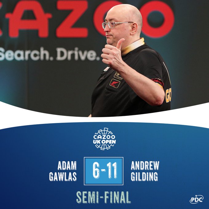 Gawlas began a resurgence and was suddenly at 5-5 reeling off three legs on the spin but Gilding regained control with a 110 checkout to break throw and go 7-5 ahead and towards the finish.