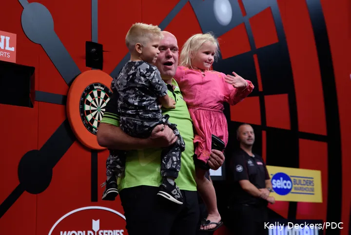 Van Gerwen already announced after his match against O'Connor that his wife Daphne and son Mike would travel to the Dutch capital on Sunday. On Sunday night, the kids can see their proud daddy at work again and they will hope, emerge successfully with the World Series of Darts Finals trophy.